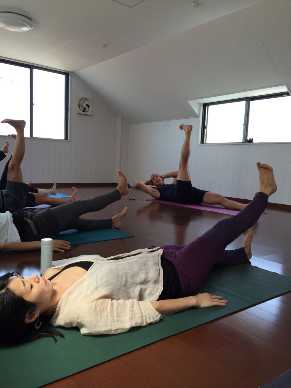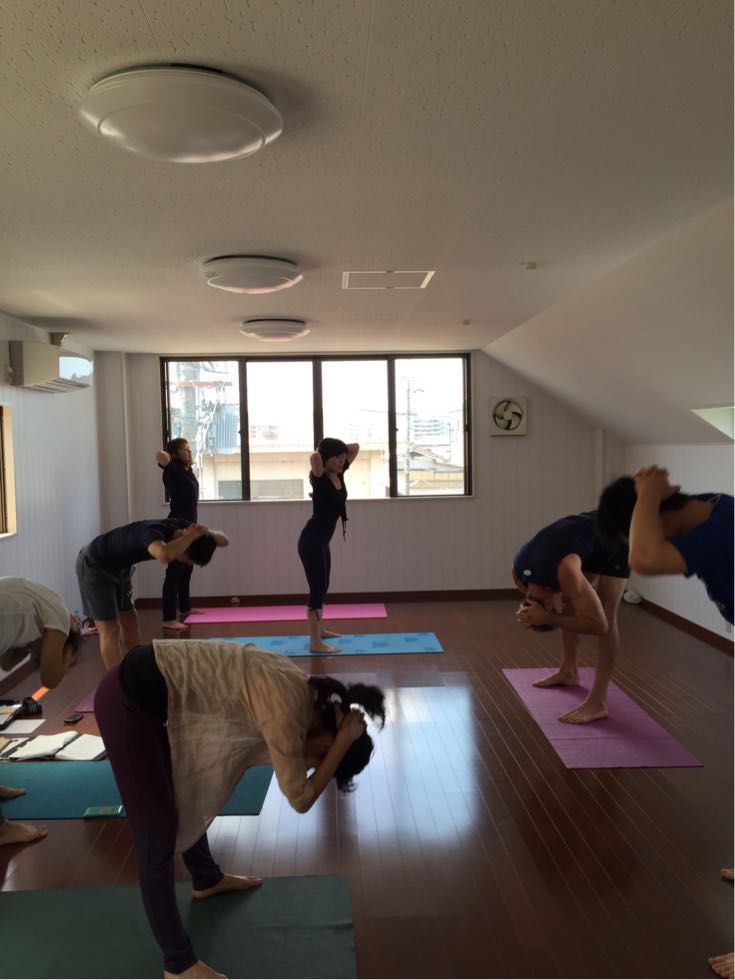 今日はアーユルヴェーダで言うところの「風」の要素を身体の中から出したり、「火」の要素を活性化させたり、「水」の要素を循環させる基本的なアーサナをしました。