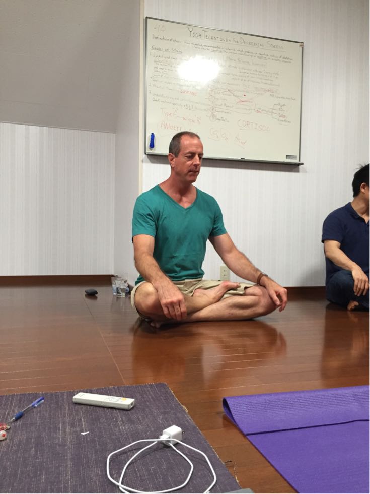ストレス減退に関連した簡単な瞑想法をみんなで実践。