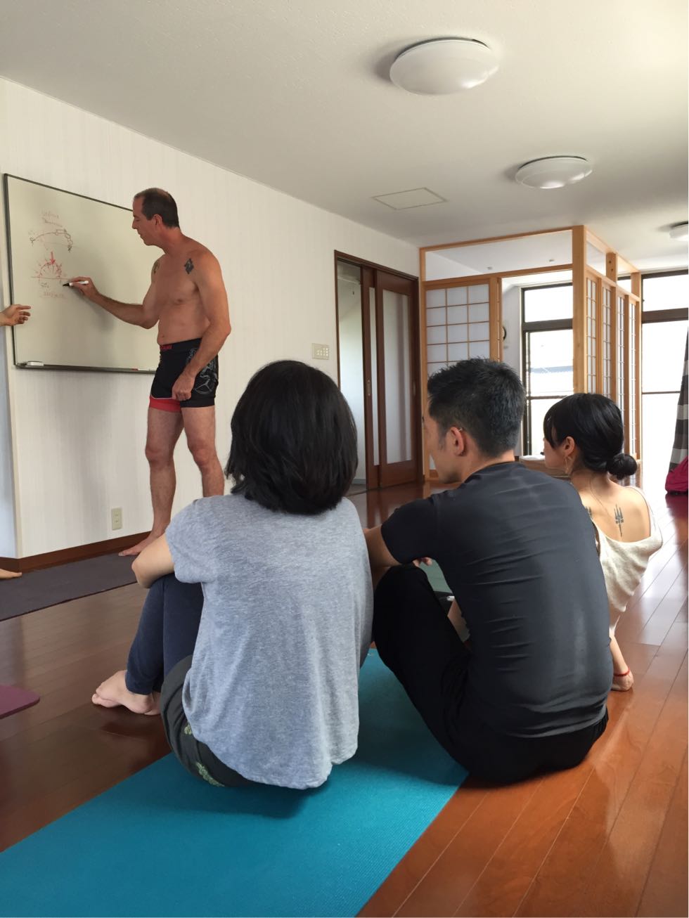 すでに習ったポーズのアドバンスポーズやポーズによって異なる注意点やフォーカスのしどころをグルジの見本を見て、実際に自分たちで体験して、図解で紐解いてくれたり。